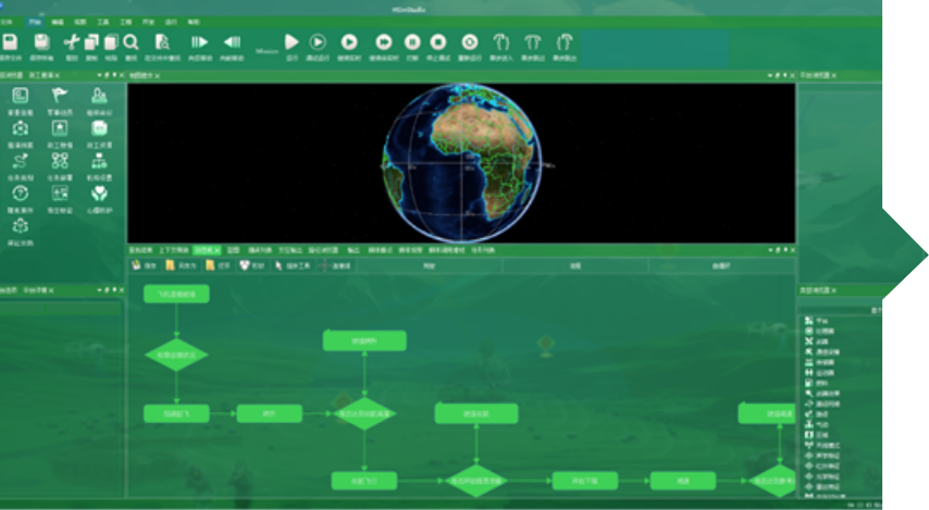 融连续系统、离散系统仿真于一体,以仿真云和Agent为仿真生态核心,实现仿真应用从设计、开发、测试、校核到评估的闭环。在建模方法上,支持状态机、行为树、WBS、蓝图、Agent等多种建模方法,实现行为模型的可视化设计。支持基于脚本对杀伤链等业务逻辑进行仿真。